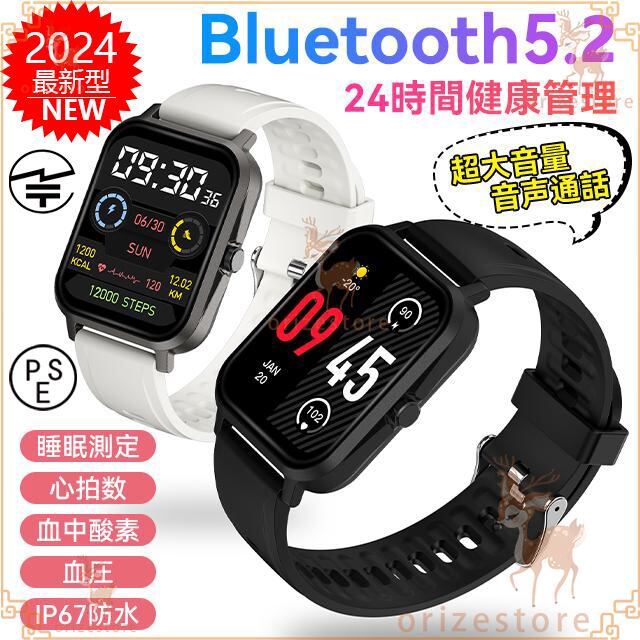 スマートウォッチ 通話機能 血圧測定 体温 血中酸素 日本製センサー 1.85インチ大画面 心拍計 大音量 スマートブレスレット IP67防水 腕時計 iphone android対応