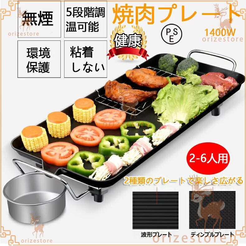 ホットプレート 焼肉 家電 パーティ 調理器具 無煙 平面プレート 1400W 100℃-250℃調温 キッチン家電 プレート 焼肉プレート おしゃれ 家族用 2~6人用