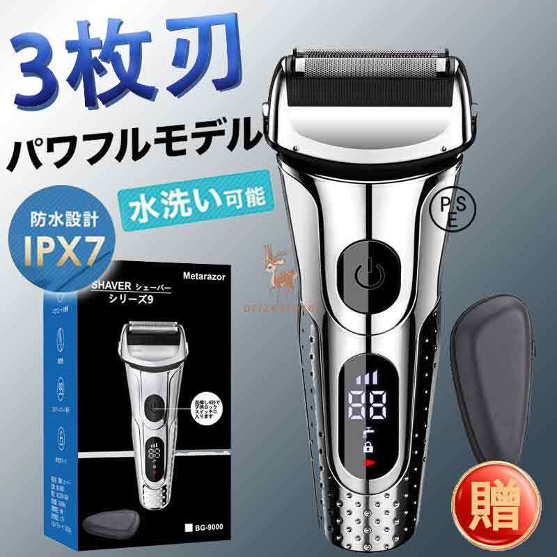 シェーバー メンズシェーバー 髭剃り 電気シェーバー 3枚刃 IPX7防水 深剃り USB充電 深剃り LED電池残量表示 ロック機能&保護ケース付き 顔 回転式